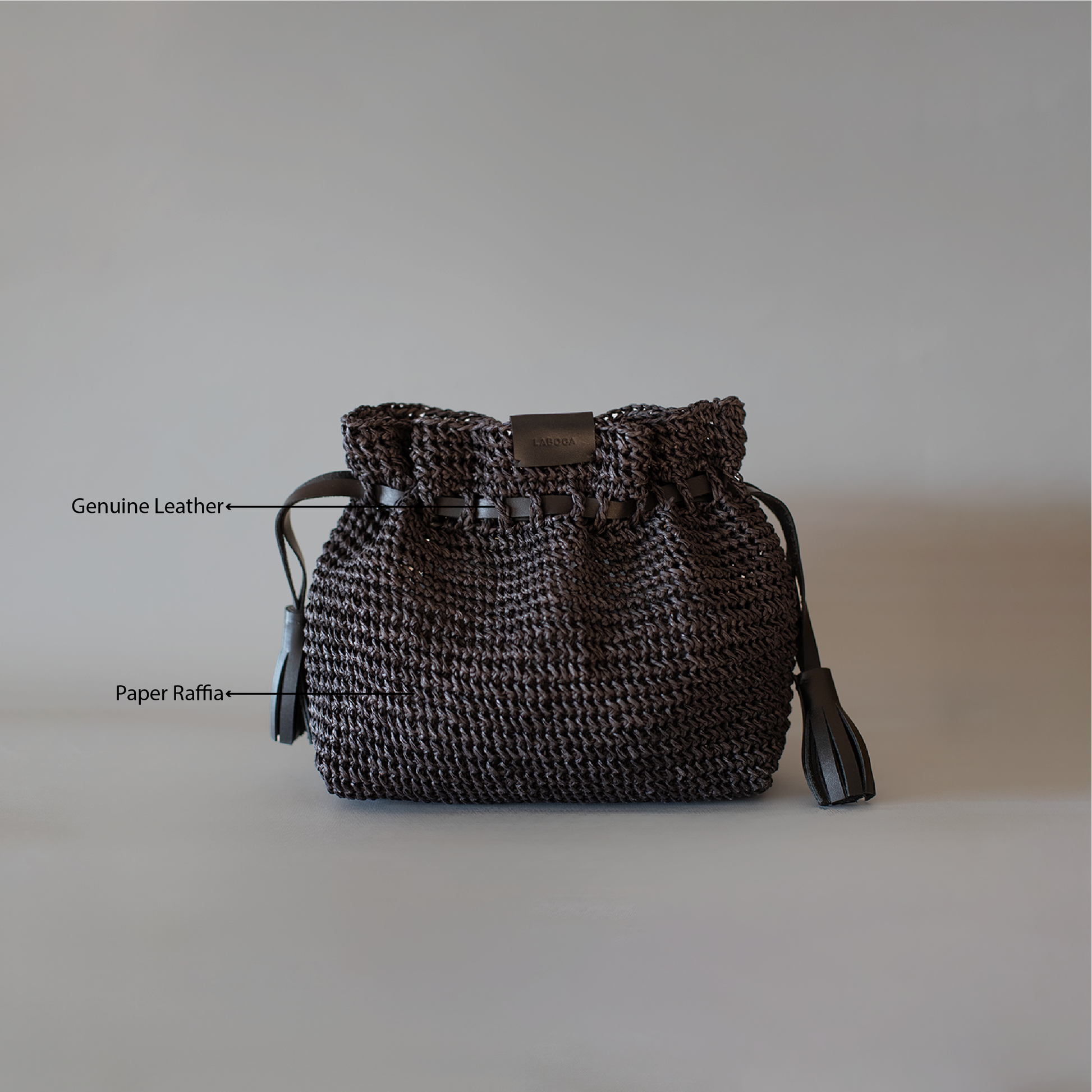 Hand-crocheted by women working from home for that extra income, we are in awe by the deftness of hands that must have spent the famous ten thousand hours to reach this level of expertise.. We had to resist adding more details in leather, because the whole design is in the intricacy of the handmade knots..